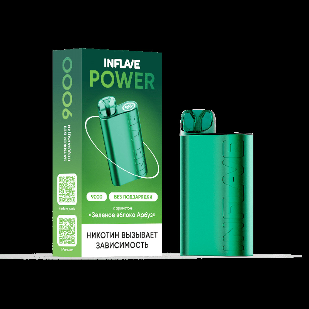 Электронная сигарета INFLAVE POWER 9000 затяжек Зеленое Яблоко Арбуз - купить в Домодедово